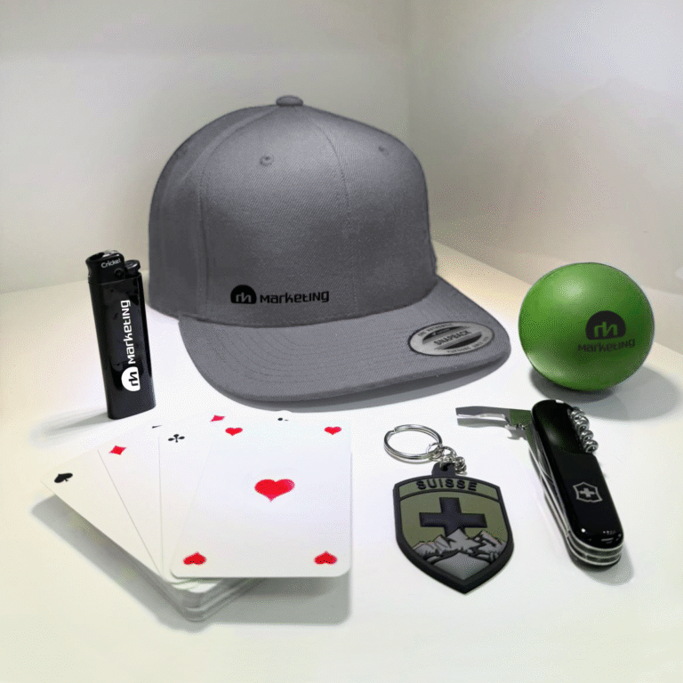 RH Marketing GmbH ist ein Schweizer One-Stop-Anbieter für Werbeartikel, Drucksachen, Werbetechnik und Corporate Fashion. Mit massgeschneiderten Lösungen, hoher Qualität und zuverlässigem Service unterstützt das Unternehmen Geschäftskunden dabei, ihre Marke wirkungsvoll und konsistent zu präsentieren.